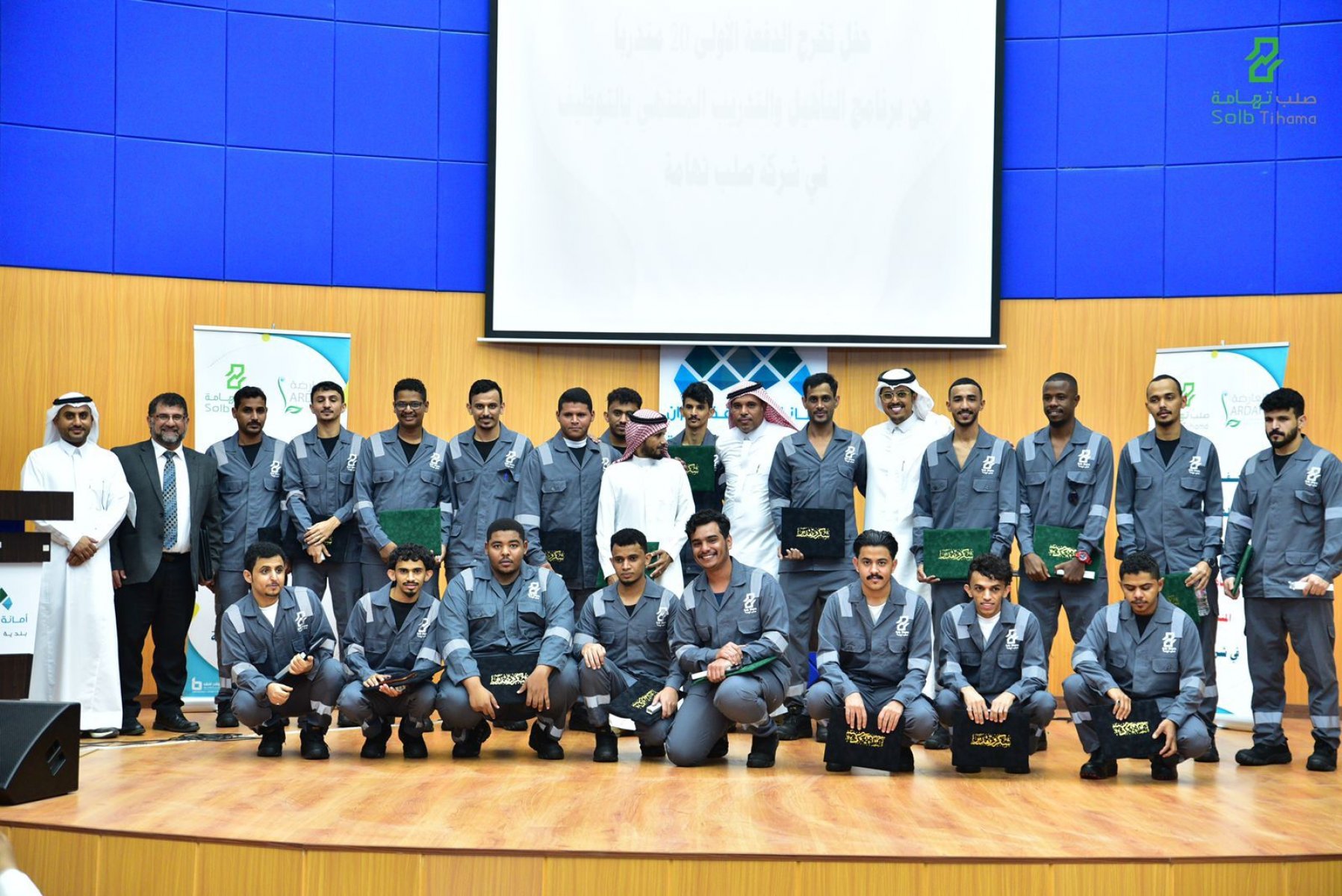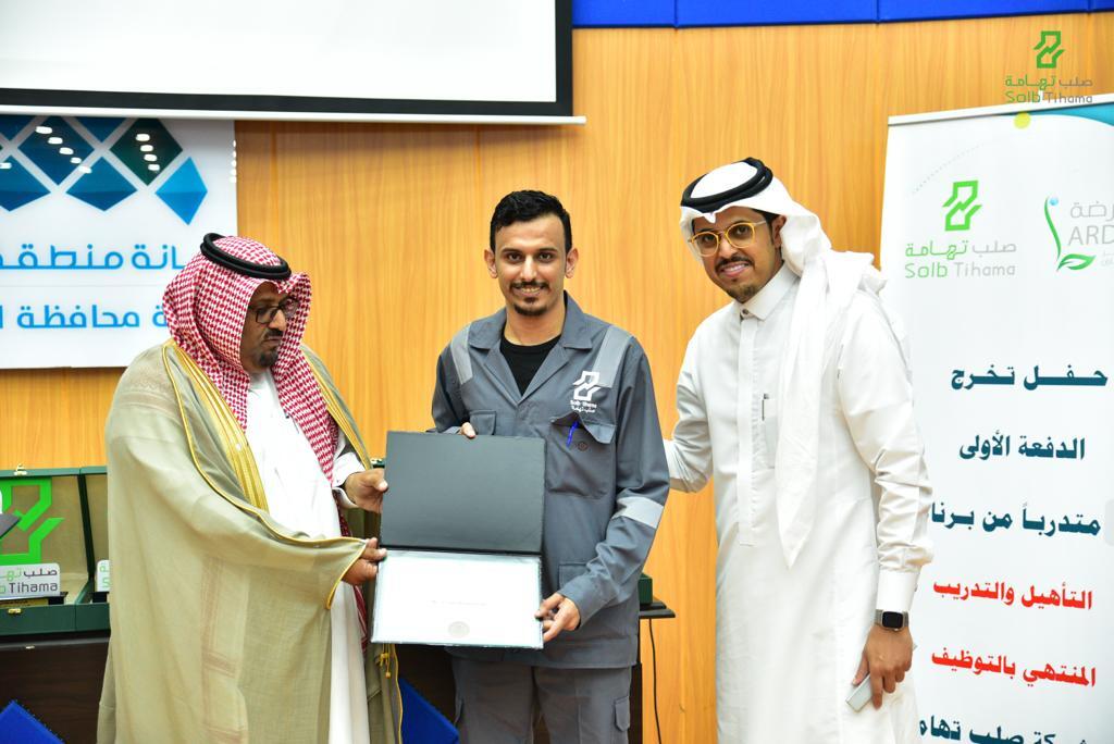 وأردف قائلاً في كلمته بهذه المناسبة أننا نحتفل اليوم بتخريج الدفعة الاولى من البرنامج المنتهي بالتوظيف بشركة صلب تهامة ، والذي ضم (٢٠) متدرباً استمروا في التدريب لمدة ثلاثة أشهر بمعهد تشكيل المستقبل. وأشار إلى أنه في ظل ما تواجهه الأسر من حاجة ماسة فقد سعة الجمعية بجلب الشراكة مع شركة صلب تهامة .